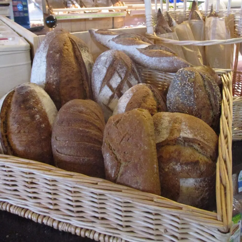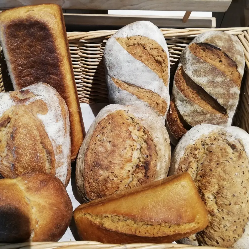 Pains complets T110, Semi-complets T80, Blancs T65, Pains aux graines et aux fruits, Petit épeautre, Pains sans gluten à la Châtaigne, Millet et Sarrasin, Baguettes T65, Brioches et Scones